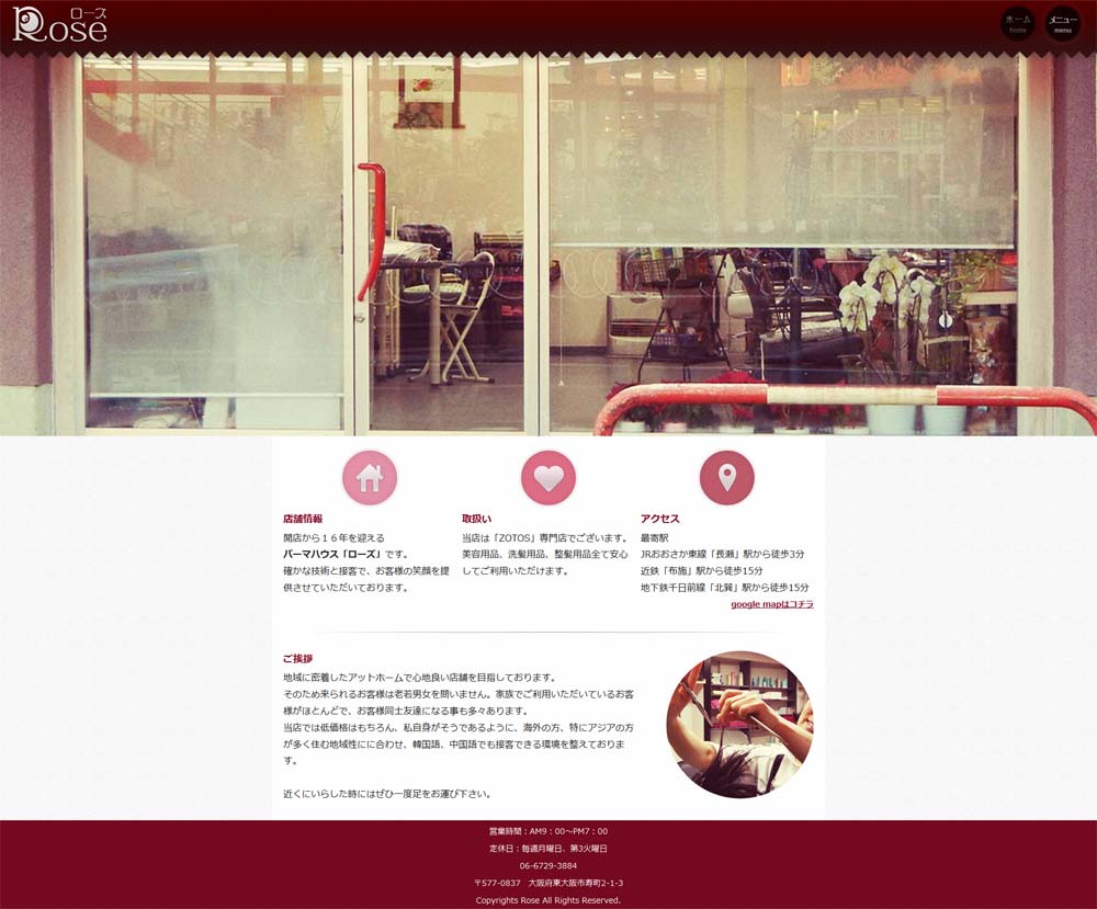 東大阪にあるパーマハウスローズ様のホームページをアップさせていただきました。 店長さんは子供の頃からお世話になっている方で、こういう形で少しでも恩返しができるのもこの仕事を選んだからこそです!! やっててよかった~ ホームページはこちらから …
